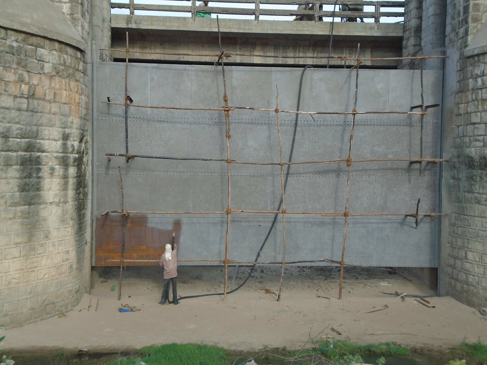 Dry abrasive grit blast cleaning is done as per SA2.5 finish and conforms to IS 9954: 1981. Surface profile is monitored using digital gauge for coating application.