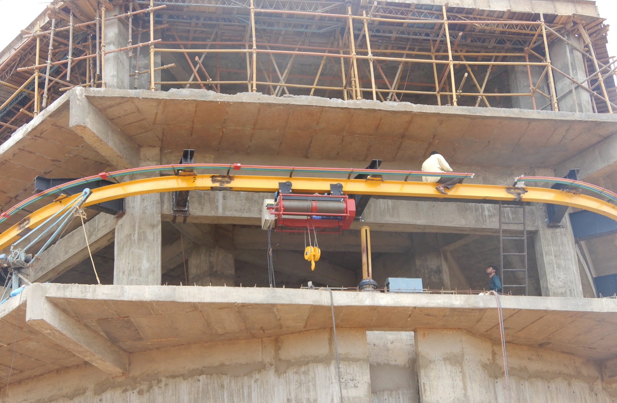 It consists of a single I-section beam guide rail that assists in raising & lowering number of shutters erected in its guide path.